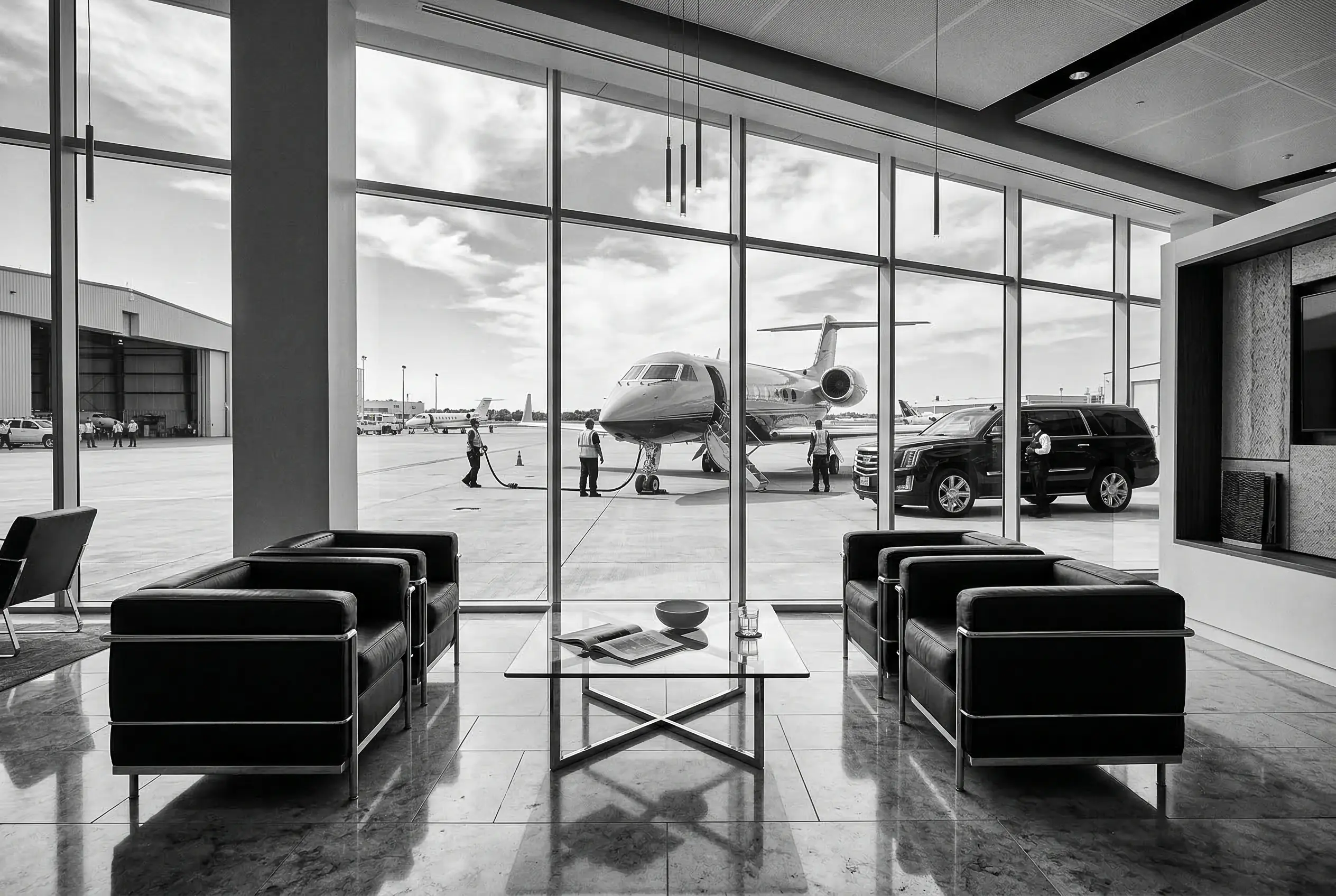 Private aviation gives you access to FBO terminals that commercial passengers never see. Arrive 15 minutes before departure.